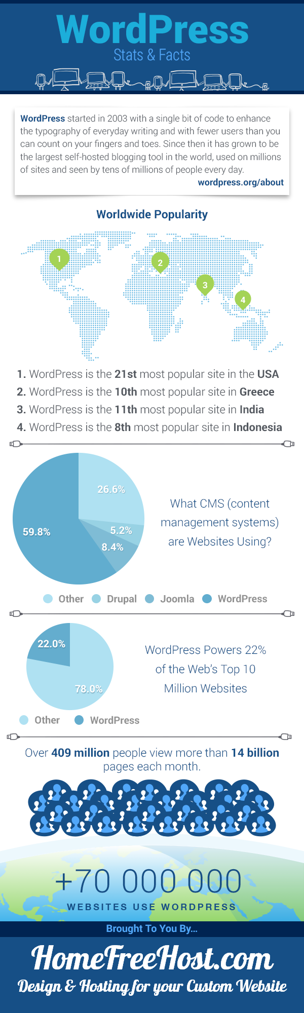 Why WordPress? WordPress is widely used, powering a large percentage of some of the most popular sites on the internet. These are just some of the reasons your website should use the most popular CMS (Content Management System) on the world wide web.